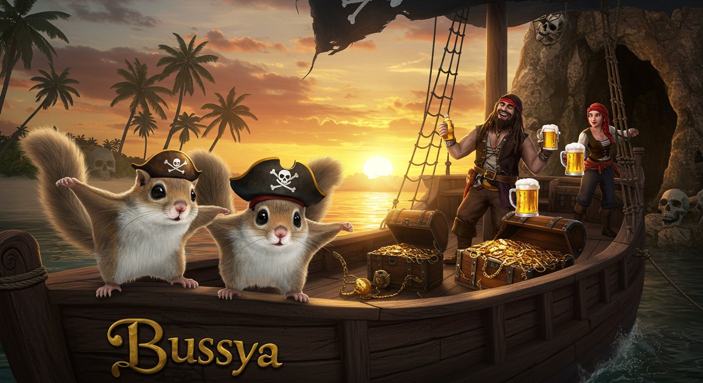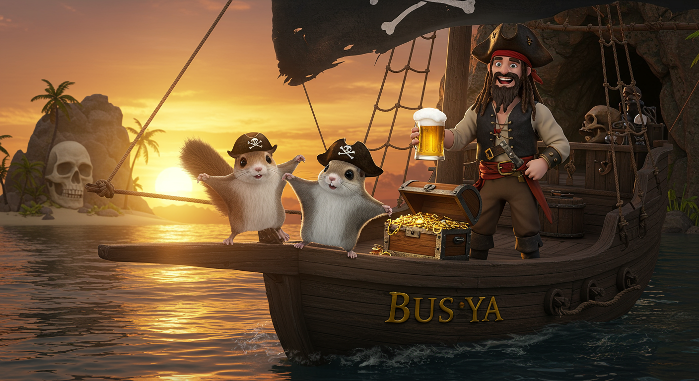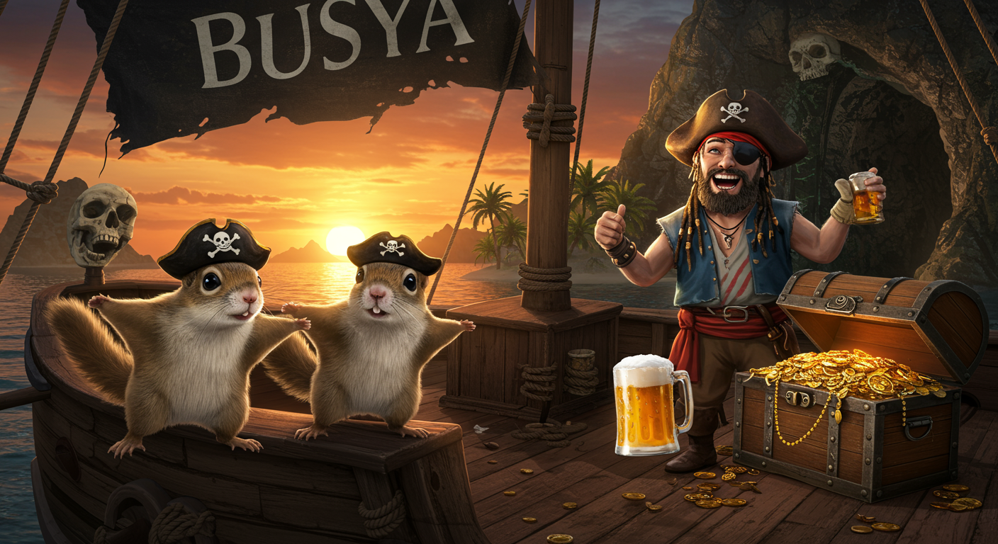 Pirate PapabusyaIntroduction devant la maison, Papabusya explique qu'il y a un trésor mais qu'il vilain pirate Peter Pochka le garde. Il faut des pirates pour l'aider.