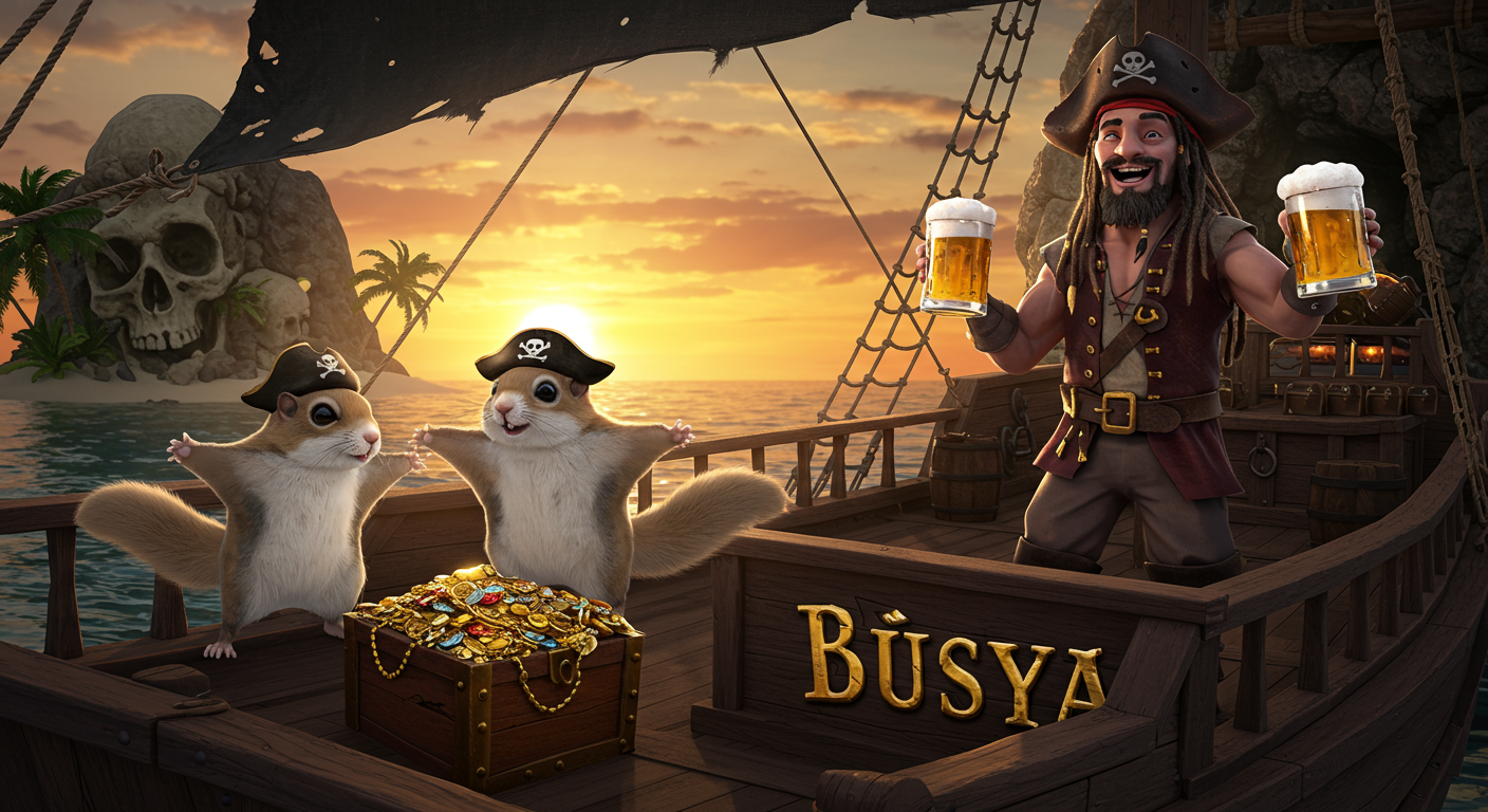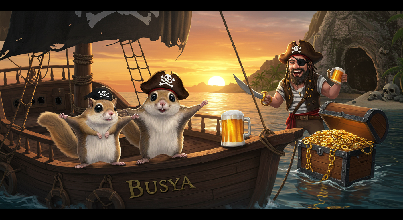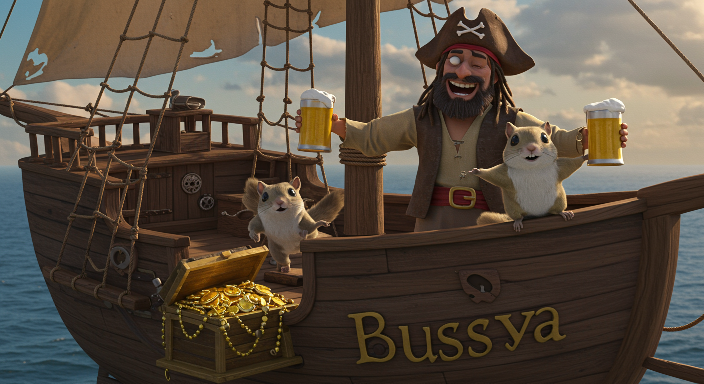 Pirate PapabusyaIntroduction devant la maison, Papabusya explique qu'il y a un trésor mais qu'il vilain pirate Peter Pochka le garde. Il faut des pirates pour l'aider.